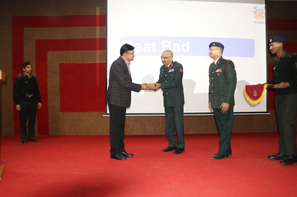 ‘हर काम देश के नाम’*एसएचओ एवं मिलिट्री हॉस्पिटल देहरादून द्वारा “बीट बैड कोलेस्ट्रॉल” पर जागरूकता कार्यक्रम आयोजित*मंगलवार, 25 नवम्बर 2025स्टेशन हेल्थ ऑर्गेनाइजेशन (SHO) एवं मिलिट्री हॉस्पिटल (MH) देहरादून के संयुक्त तत्वावधान में आज दून सैनिक इंस्टीट्यूट, देहरादून में “बीट बैड कोलेस्ट्रॉल” विषय पर स्वास्थ्य जागरूकता कार्यक्रम आयोजित किया गया। कार्यक्रम की शुरुआत कैप्टन नीरज कुमार एवं कैप्टन सोनाली के उद्घाटन संबोधन से हुई, जिसमें उन्होंने निवारक स्वास्थ्य, जीवनशैली प्रबंधन एवं नियमित चिकित्सा जांच की महत्ता पर जोर दिया।व्याख्यान डॉ. अदनान मसूद, एसोसिएट डायरेक्टर, इंटरनल मेडिसिन, मैक्स सुपर स्पेशलिटी हॉस्पिटल द्वारा प्रस्तुत किया गया। उन्होंने कोलेस्ट्रॉल के प्रकार, गुड (HDL) एवं बैड (LDL) कोलेस्ट्रॉल के अंतर तथा अनियंत्रित LDL स्तरों से हृदय रोग एवं स्ट्रोक के बढ़ते खतरे के बारे में विस्तार से बताया। उन्होंने खराब आहार, व्यायाम की कमी, धूम्रपान, मोटापा एवं तनाव जैसे प्रमुख जोखिम कारकों के साथ-साथ जीवनशैली में आवश्यक सुधारों की जानकारी भी दी।ब्रिगेडियर प्रफुल मोहन, कमांडेंट, एम एच देहरादून ने भी सभा को संबोधित करते हुए सभी कार्मिकों एवं परिवारों को हृदय-स्वस्थ आदतें अपनाने के लिए प्रेरित किया। उन्होंने व्याख्यान में उत्कृष्ट योगदान हेतु डॉ. अदनान मसूद को मोमेंटो भेंट कर सम्मानित किया।कार्यक्रम में SHO द्वारा एक स्वास्थ्य प्रदर्शनी भी लगाई गई, जिसमें हृदय स्वास्थ्य, संतुलित आहार एवं निवारक जीवनशैली से संबंधित शैक्षिक सामग्री एवं प्रदर्शन शामिल थे।कुल 271 प्रतिभागियों ने कार्यक्रम में भाग लिया, जिनमें 05 अधिकारी, 42 जेसीओ, 120 ओआर तथा 104 परिवार शामिल थे। सभी उपस्थित जनों ने कोलेस्ट्रॉल नियंत्रण एवं हृदय स्वास्थ्य बनाए रखने के बारे में महत्वपूर्ण जानकारी प्राप्त की।लेफ्टिनेंट कर्नल मनीष श्रीवास्तव, जनसंपर्क अधिकारी (रक्षा)देहरादून, उत्तराखंडई-मेल पता: prodefencedehradun@gmail.com