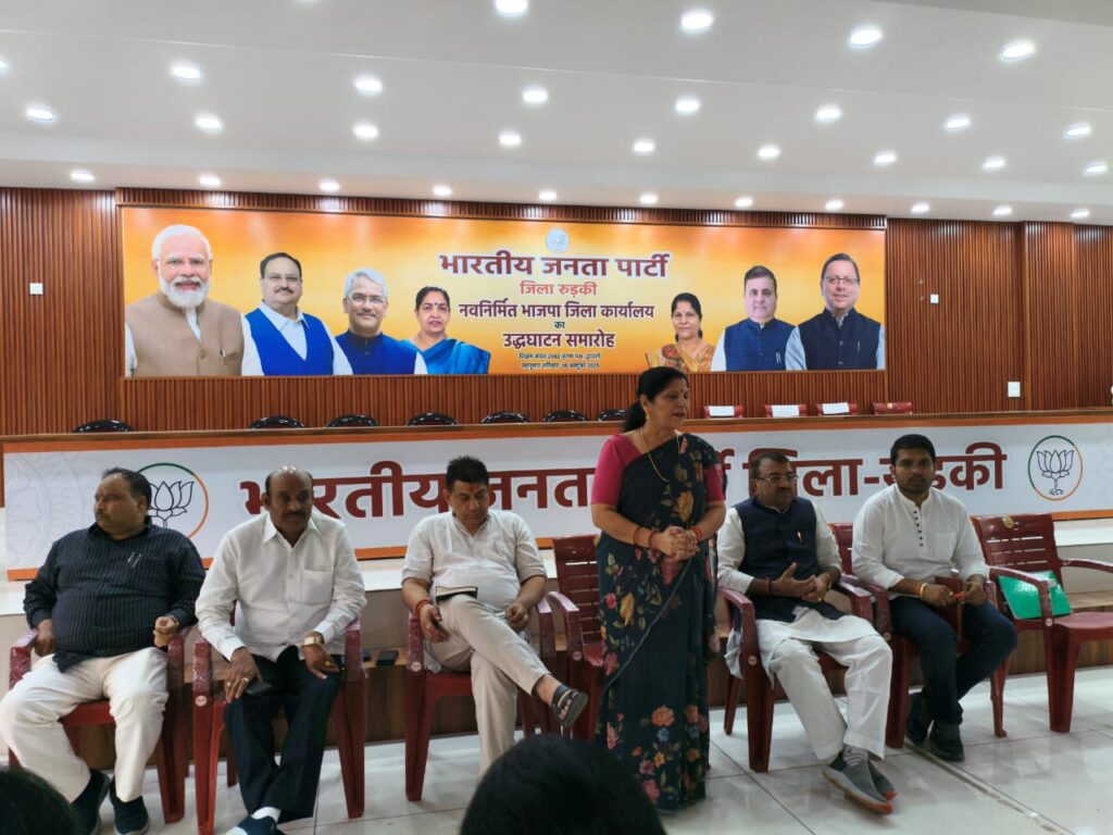 रुड़की,– उत्तराखंड राज्य स्थापना दिवस के अवसर पर प्रधानमंत्री श्री नरेन्द्र मोदी जी के देहरादून आगमन को लेकर भारतीय जनता पार्टी रुड़की जिला इकाई की एक महत्वपूर्ण बैठक आज जिला कार्यालय में संपन्न हुई। बैठक की अध्यक्षता भाजपा जिला अध्यक्ष डॉ. मधु सिंह ने की, जबकि बैठक का संचालन भाजपा जिला महामंत्री सागर गोयल ने किया।मंचासीन प्रदेश उपाध्यक्ष राकेश गिरी, झबरेड़ा विधानसभा प्रत्याशी राजपाल सिंह, भगवानपुर विधानसभा प्रत्याशी मास्टर सत्यपाल भी रहे