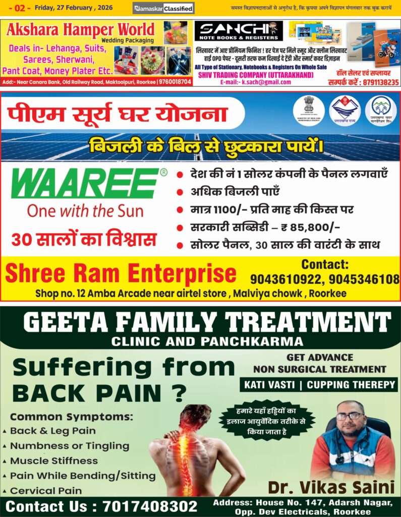 देहरादून: सोमवार को “सेवा, सुशासन और विकास” कार्यक्रम के तहत आयोजित बहुउद्देशीय शिविरों का सफल समापन हुआ. इन शिविरों ने जनता…