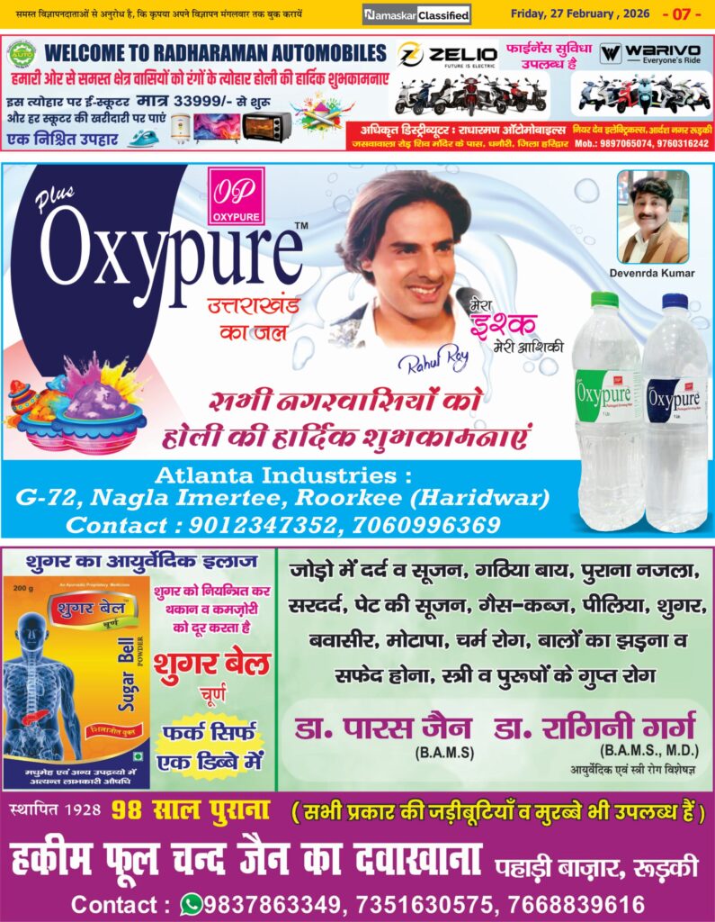 रुड़की:》आज रुड़की के एआरटीओ कार्यालय में एक विशेष रक्तदान शिविर का आयोजन किया गया, जिसका उद्घाटन संयुक्त मजिस्ट्रेट रुड़की, श्री…