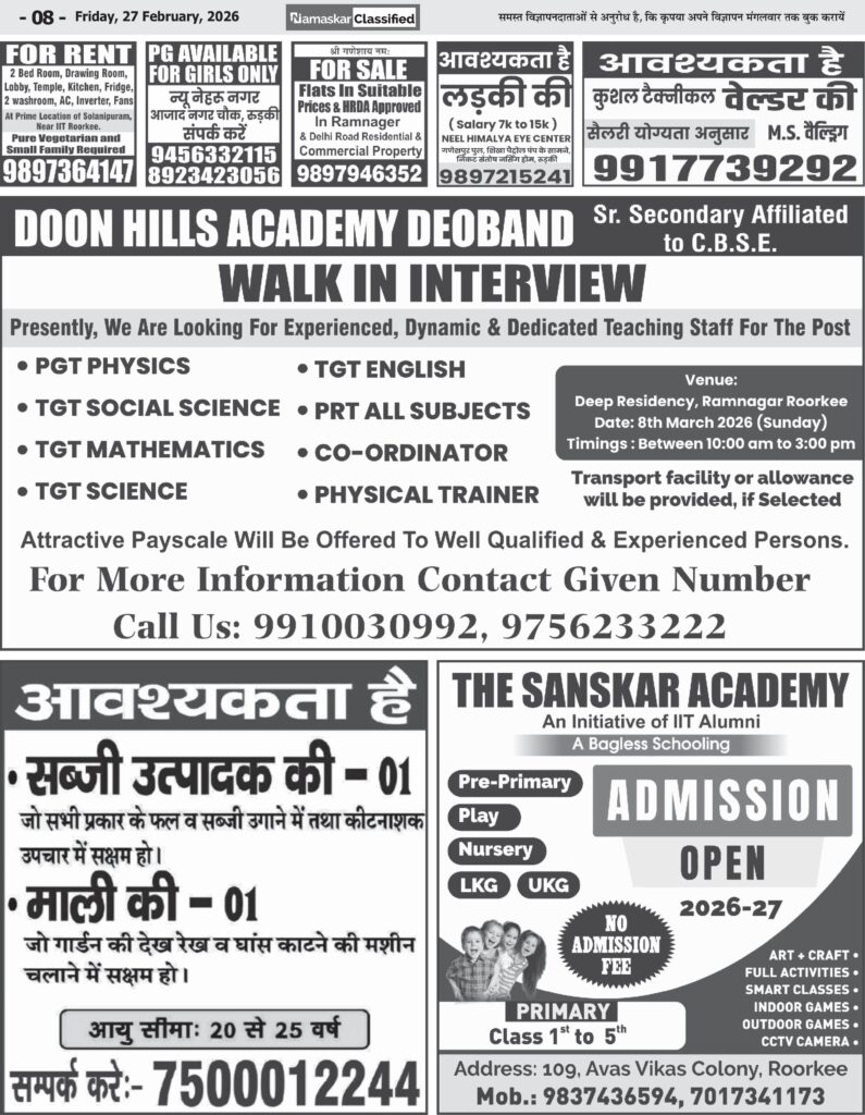 देहरादूनः उत्तराखंड सरकार राज्य में प्रतियोगी परीक्षाओं की तैयारी कराने वाले कोचिंग सेंटरों शिकंजा कसने जा रही है। इन संस्थानों पर…