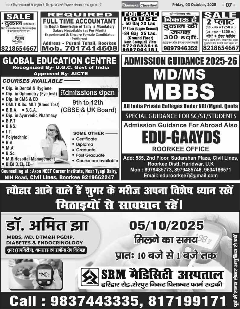 NAMASKAR CLASSIFIED 03 OCTOBER 2025