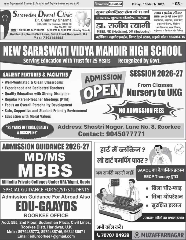रुड़की, हरिद्वार84उत्तराखंड बटालियन एनसीसी, रुड़की के तत्वाधान में हरिद्वार विश्वविद्यालय, बाजूहेड़ी (रुड़की ) में संचालित संयुक्त वार्षिक प्रशिक्षण शिविर के…