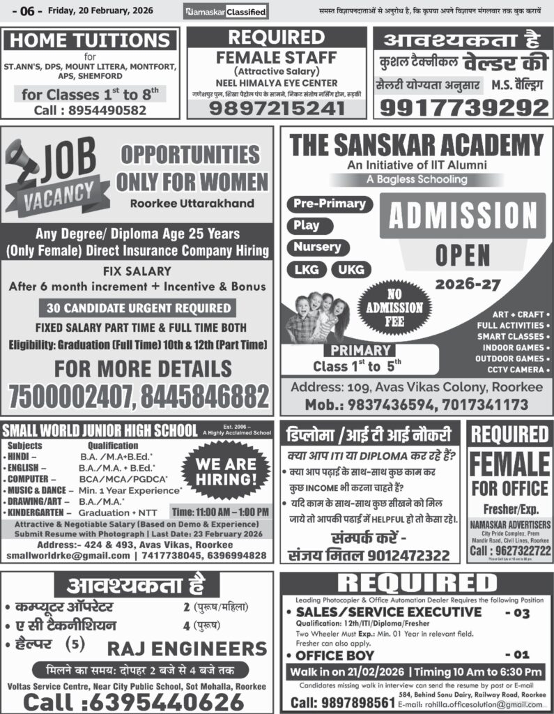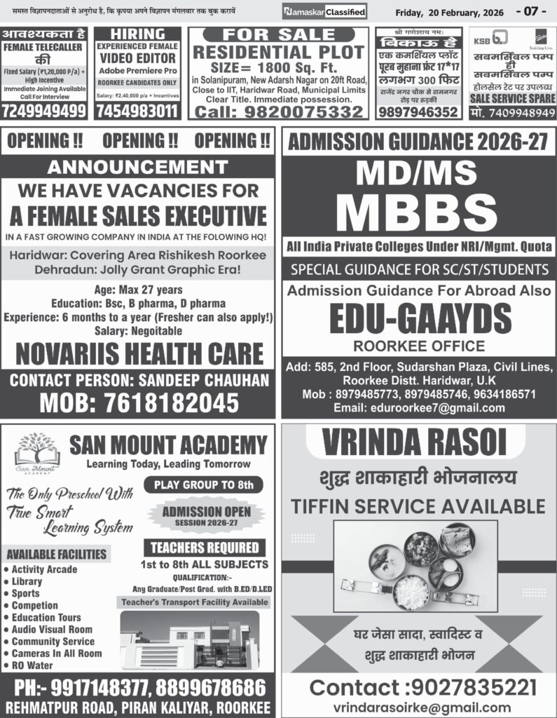 रुड़की, — आज संयुक्त मजिस्ट्रेट, रुड़की की अध्यक्षता में तहसील कार्यालय में एक महत्वपूर्ण बैठक आयोजित की गई, जिसमें तहसीलदार…