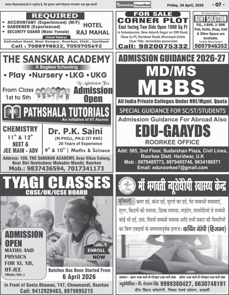 रुड़की महिला सीट का आरक्षण तय होते ही महिलाओं में कई दावेदार सामने आए हैं। कई ने अपनी दावेदारी पेश…