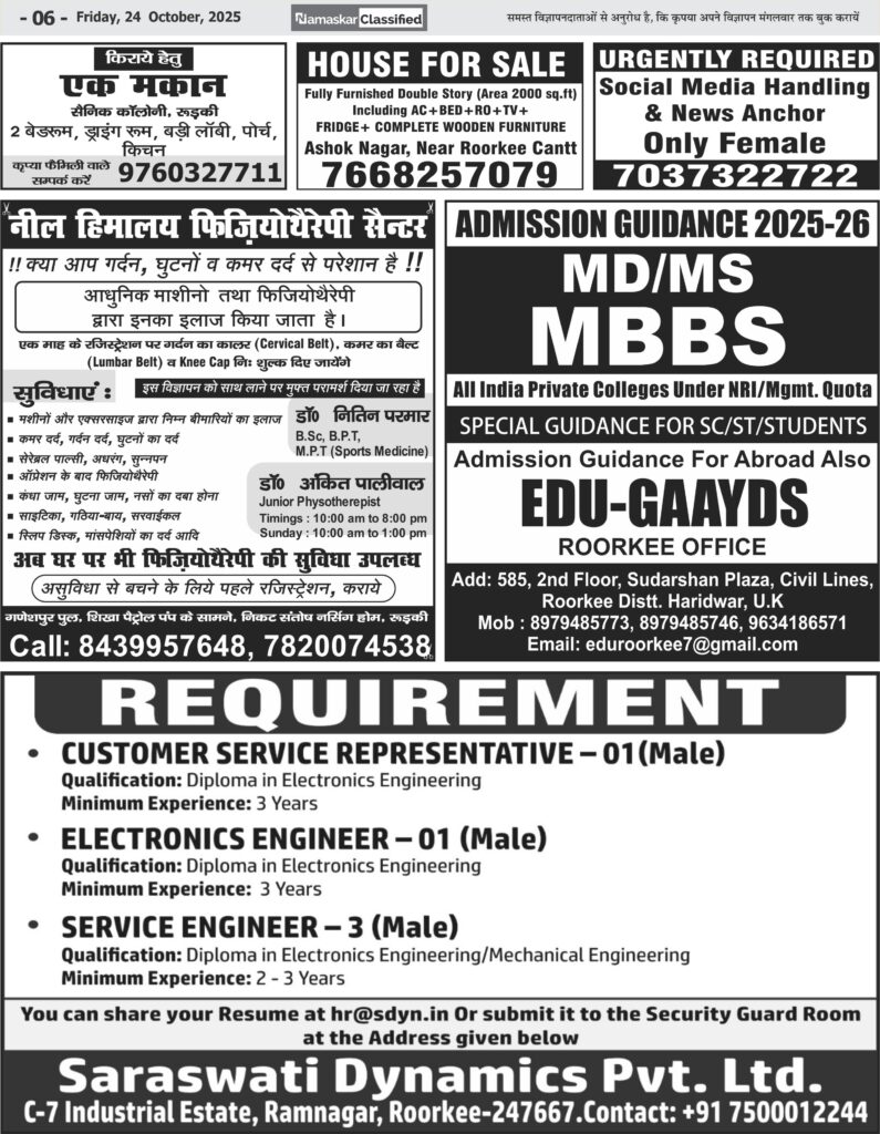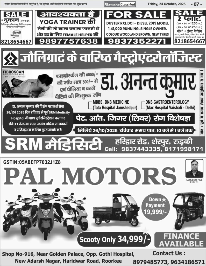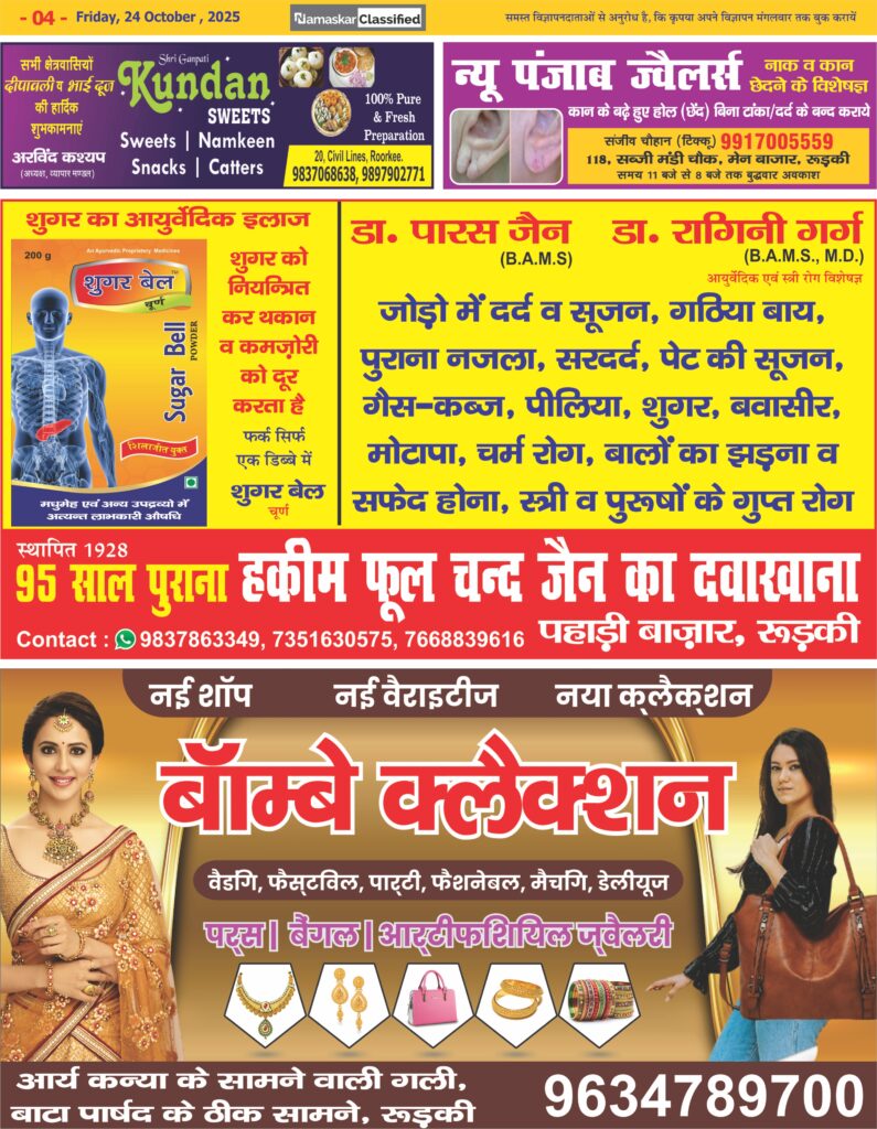 रुड़की। छठ पूजा को मद्देनज़र रखते हुए आज ज्वाइंट मजिस्ट्रेट रुड़की व तहसीलदार रुड़की, एसएचओ सिविल लाइंस और नगर निगम…