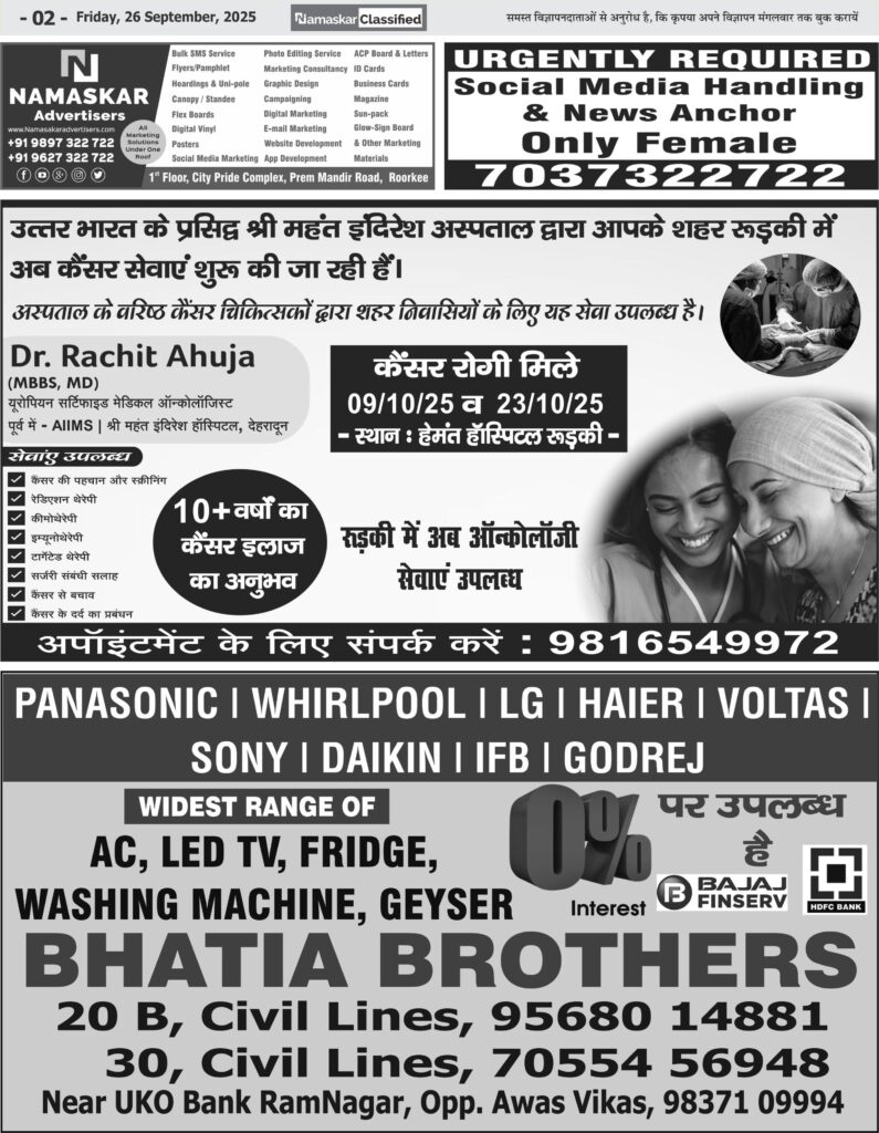 रुड़की स्थित एक होटल में माननीय राज्यसभा सांसद डॉ. कल्पना सैनी और चुनाव संयोजक आदेश सैनी के नेर्तत्व में सैनी…