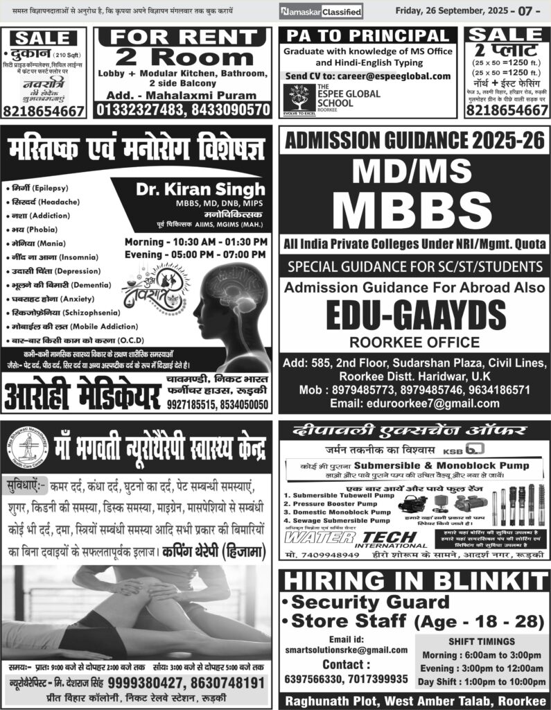 भारत विकास परिषद अविरल गंगा शाखा, रुड़की द्वारा आज दिनांक 6 अक्टूबर 2025 को शिवालिक पब्लिक सीनियर सेकेंडरी स्कूल, ढंढेरा…