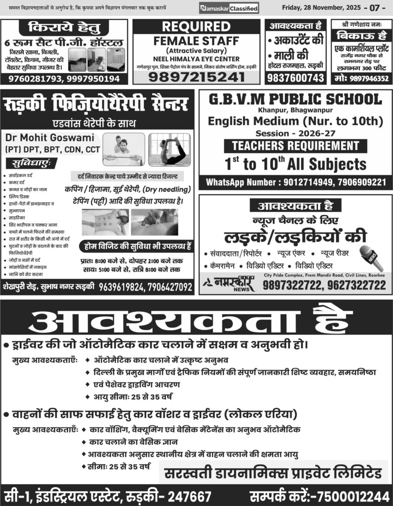 NAMASKAR CLASSIIED 07 NOVEMBER 2025
