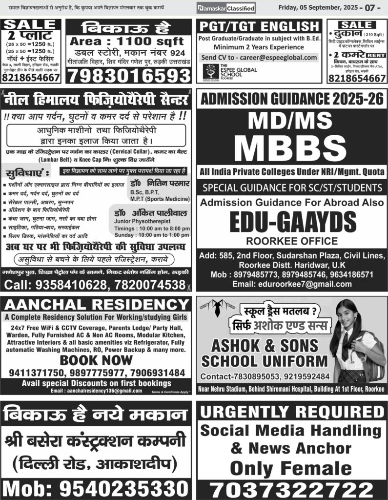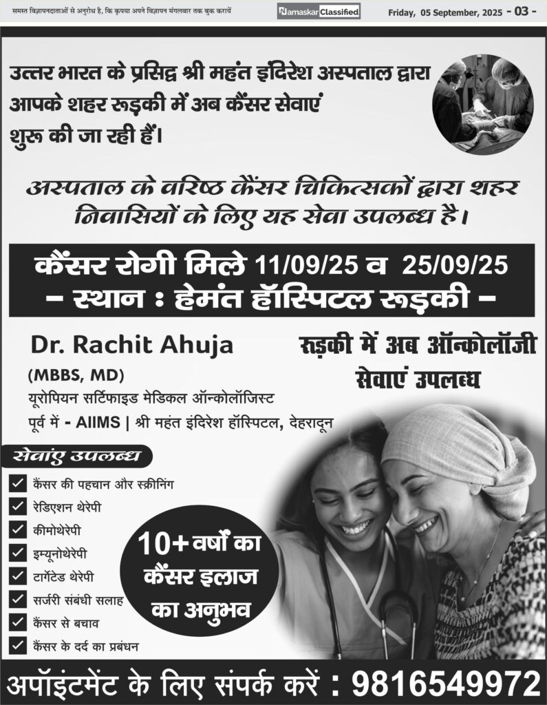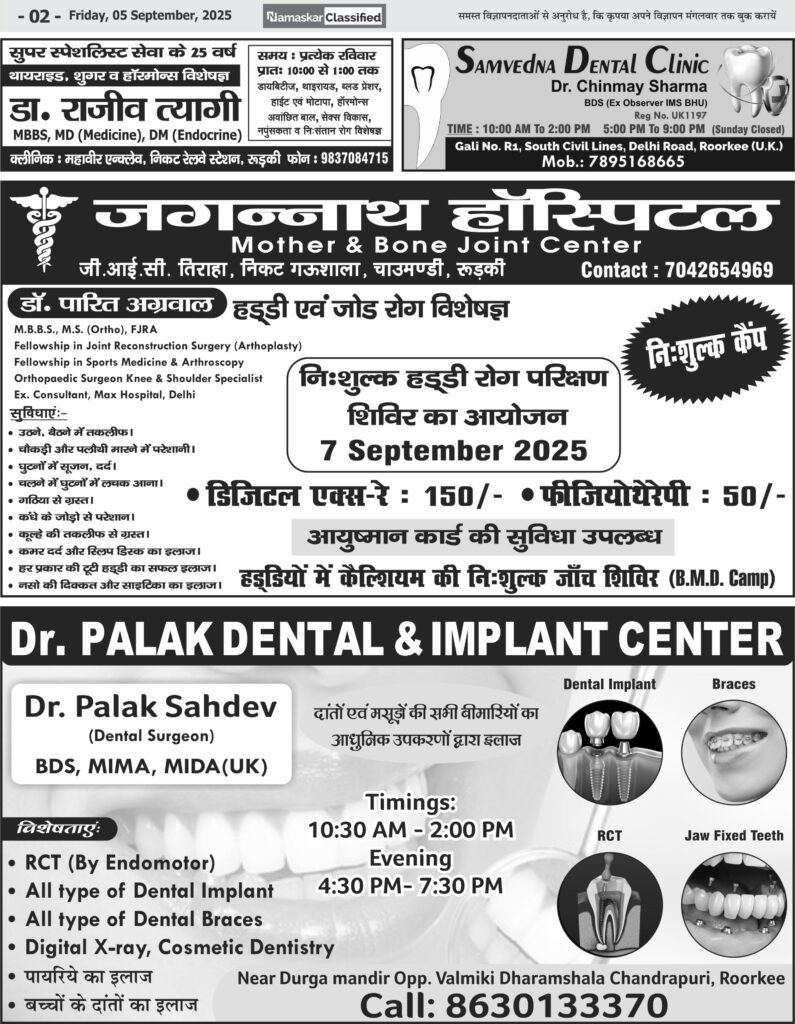 5 अक्टूबर 2025, रविवार | समय: सुबह 11 से दोपहर 2 बजे तक | स्थान: सिविल हॉस्पिटल, देहरादून रोड, रुड़की**विशेषज्ञ…