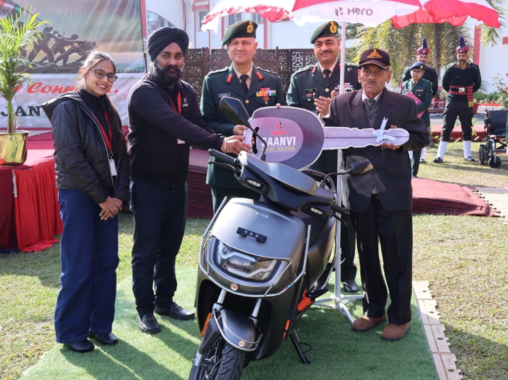 हीरो मोटोकॉर्प के CSR सहयोग से सुबेदार सी.एम. जोशी, सेना मेडल को एक इलेक्ट्रिक स्कूटर प्रदान किया गया।
