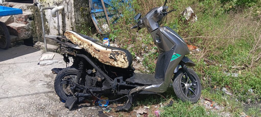 रुड़की के बंधा रोड पर घर में खड़ी इलेक्ट्रॉनिक स्कूटी में जोरदार धमाका होने के बाद उसमें आग लग गई। घटना के वक्त स्कूटी को चार्जिंग पर लगाया हुआ था। चार्जिंग के दौरान अचानक हुए ब्लास्ट से आग भड़क गई। जिसके बाद घर के लोगों ने आग पर काबू पाने की कोशिश की, आग लगने का कारण इलेक्ट्रिक स्कूटी में चार्जिंग के दौरान शॉर्ट सर्किट हो सकता है। हादसे में किसी प्रकार का जान माल नुकसान नहीं हुआ, लेकिन इलेक्ट्रॉनिक स्कूटी पूरी तरह जलकर राख हो गईं।